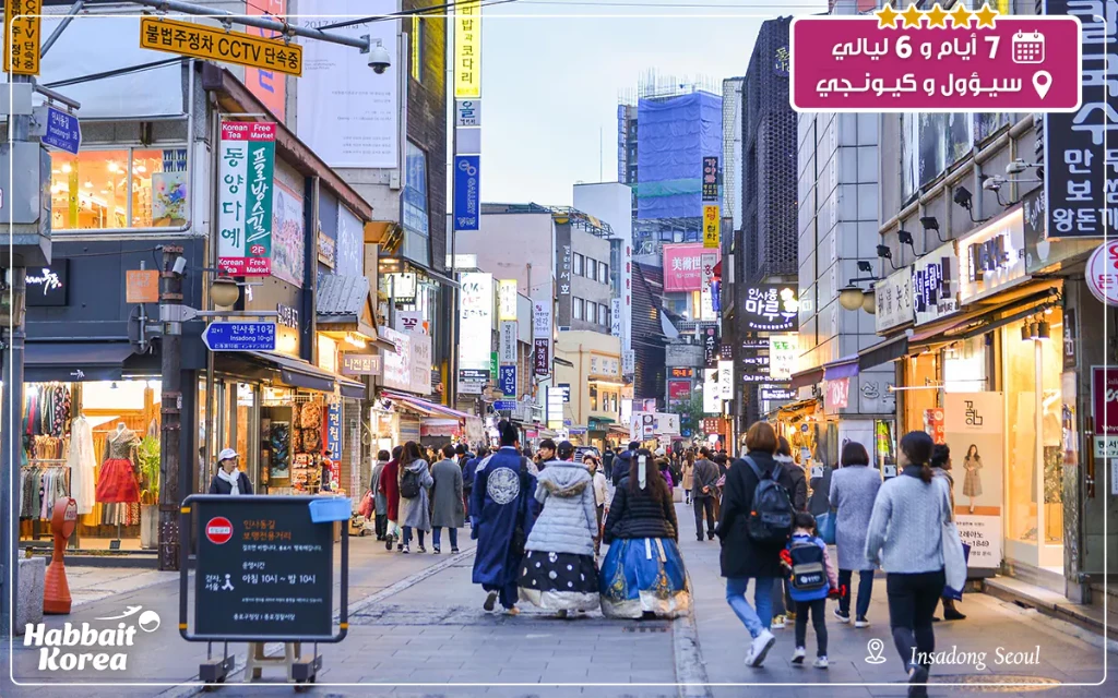 الاستقبال في المطار والتوصيل للفندق. في اليوم الثاني، جولة بالزي التقليدي في القصر الكوري، زيارة إنسادونغ، والاستمتاع بإطلالة برج نامسان الليلية.